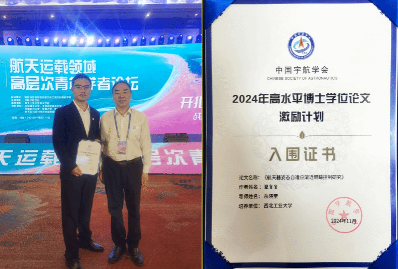 在研究过程中,夏冬冬通过辛勤的工作,取得了较为优秀的学术成果,以第一作者在ISA Transactions、International Journal of Robust and Nonlinear Control 等重要期刊发表高水平论文6篇。在导师的悉心指导下,夏冬冬根据研究成果,草拟论文大纲,明确各部分的结构和内容,反复修改论文和提升论文质量,将初稿提交导师审阅,获取详细反馈和修改建议。在导师和实验室成员的支持下,夏冬冬最终完成了高质量的博士论文。经过预答辩、外审和正式答辩,夏冬冬的博士学位论文得到了评审委员会和专家们的一致好评,被认为是一篇优秀的博士论文。并且,博士学位论文最终入选中国宇航学会高水平博士学位论文激励计划。这一过程不仅是他个人学术能力的体现,也离不开导师、实验室和学院的全力支持。
