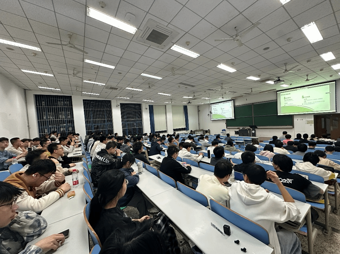 在两位成人综艺的分享过程中,2023级同学们全神贯注、认真聆听,不时记录下关键信息。本次主题班会充分发挥了朋辈引领的作用,在同学们之间营造了积极向上、互帮互助的良好氛围,激励着同学们在学业和科研道路上不断奋进,勇攀高峰。