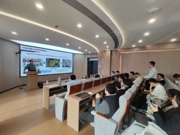 徐凯教授以“机器人世界模型”为主题,为师生们带来了一场精彩的学术讲座。他详细介绍了团队在世界模型领域的最新研究进展,涵盖了从理论概念到实际应用的多个方面。徐凯教授深入浅出地讲解了世界模型在人工智能领域的前沿突破,特别是在复杂环境建模与智能决策中的关键作用,引发了与会师生的浓厚兴趣和深入思考。