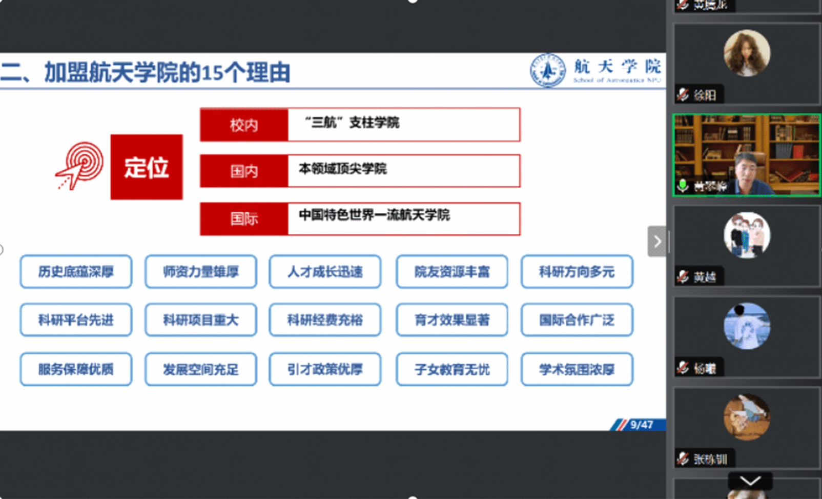 之后八位研究所所长和五位翱翔团队的带头人、核心成员介绍了研究所及团队的情况,并表示真诚地希望各位优秀的青年学者能够加盟。
