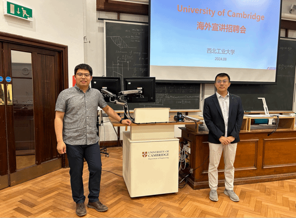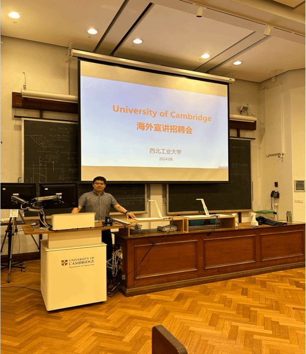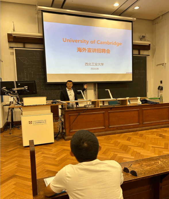 二:代洪华与李阳老师在英国剑桥和莱斯特大学召开海外宣讲招聘会,大学之根本在于人才,代老师以优秀的演讲能力和过硬的专业技术,和对母校发展的热情,吸引了莱斯特与剑桥大学优秀青年学者积极参与,为我校人才队伍建设奠定了良好的基础。