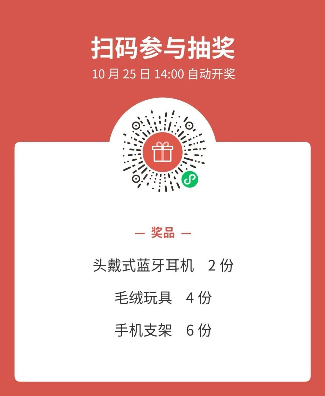 2.中奖名额共计12人,开奖时间为10月25日14:00;